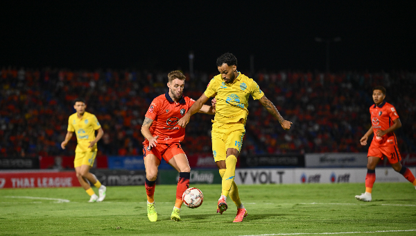 นาทีที่ 26 เจฟเฟอร์สัน ทาบินาส ขึ้นเกมทางซ้ายเปิดบอลโค้งลึกยาวไปทางขวา นฤบดินทร์ วีรวัฒโนดม วิ่งมาเปิดบอลเร็วเข้าไปในกรอบเขตโทษ คริกอร์ โมราเอส ได้โหม่งบอลตกพื้น ทว่าบอลเบาไป ธณชัย หนูราช นายด่านเจ้าถิ่นออกมารับไว้ได้