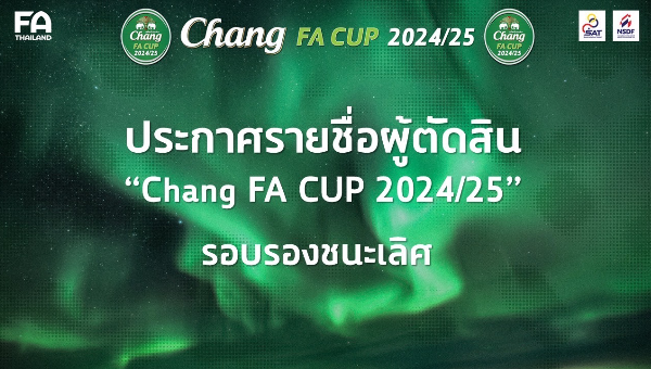 ประกาศ : รายชื่อ "ผู้ตัดสิน" ปฏิบัติหน้าที่ในการแข่งขันฟุตบอล "ช้าง เอฟเอ คัพ" ประจำปี 2024/25 รอบรองชนะเลิศ