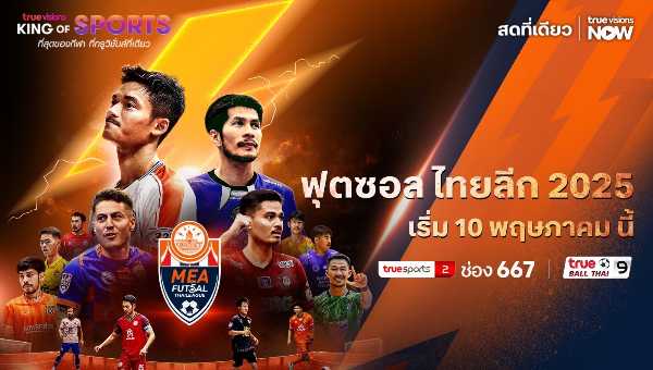 ห้ามพลาด! กับศึก MEA ฟุตซอลไทยลีก 2025/26 สด ครบทุกคู่ 182 แมตช์ เริ่มวันเสาร์ที่ 10 พฤษภาคมนี้ เอ็กซ์คลูซีฟ ทางแอปพลิเคชันทรูวิชั่นส์ นาว (TrueVisons NOW)