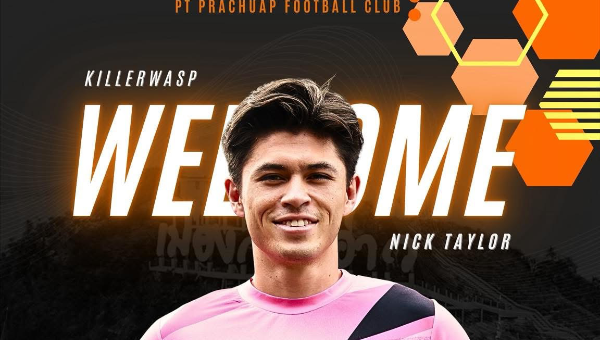 สโมสรพีที ประจวบ เอฟซี มีความยินดีประกาศให้ทราบว่า “นิค เทย์เลอร์” ริมเส้นสัญชาติอเมริกันวัย 26 ปีทำการเซ็นสัญญาร่วมทัพเข้าสู่รังต่อพิฆาตอย่างเป็นทางการ