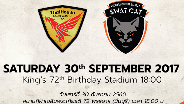 บริษัท ไทยลีก จำกัด เคาะคิวแข่งใหม่เกมโตโยต้า ไทย ลีก 2017 ระหว่าง ไทยฮอนด้า ลาดกระบัง พบกับ นครราชสีมา มาสด้า เอฟซี ที่ไม่สามารถแข่งตามกำหนดเดิมเมื่อวันอาทิตย์ที่ 24 กันยายน ที่ผ่านมาได้ โดยล็อกคิวใหม่เป็น 30 กันยายนี้