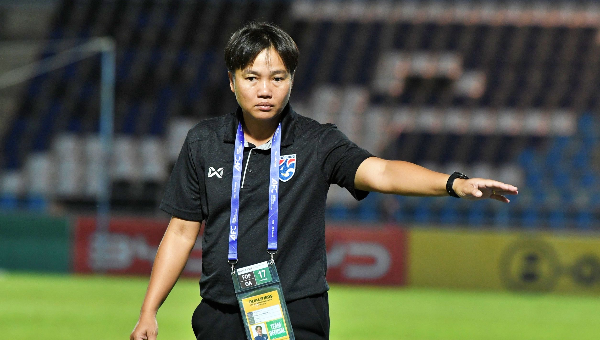 ธิดารัตน์ วิวาสุขุ หัวหน้าผู้ฝึกสอน ฟุตบอลหญิงทีมชาติไทย รุ่นอายุไม่เกิน 17 ปี ให้สัมภาษณ์หลังการแข่งขันฟุตบอลหญิงชิงแชมป์เอเชีย รุ่นอายุไม่เกิน 17 ปี รอบคัดเลือก กลุ่มเอฟ นัดแรก