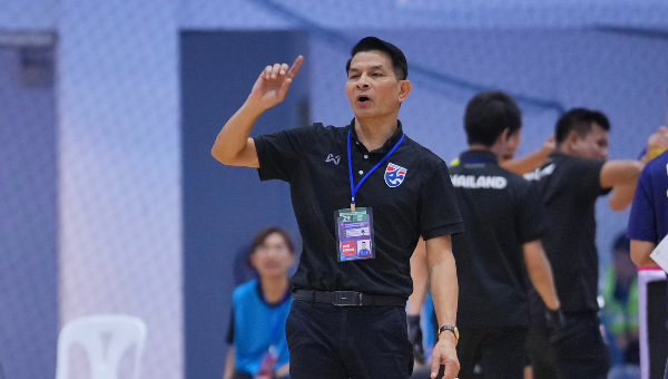 บุญเลิศ เจริญวงศ์ หัวหน้าผู้ฝึกสอน ฟุตซอลชายทีมชาติไทย รุ่นอายุไม่เกิน 19 ปี ให้สัมภาษณ์หลังการแข่งขันฟุตซอลชิงแชมป์อาเซียน รุ่นอายุไม่เกิน 19 ปี 2025 รอบชิงชนะเลิศ