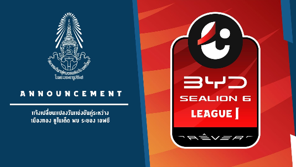 แจ้งเปลี่ยนแปลงวันแข่งขันคู่ระหว่าง เมืองทอง ยูไนเต็ด พบ ระยอง เอฟซี