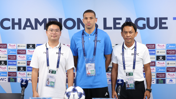 ณ ห้องแถลงข่าวสนามแคมป์เบลทาวน์ สปอร์ต สเตเดียม “โค้ชแบน” ธชตวัน ศรีปาน และ ริวัลดินโญ่ ร่วมแถลงข่าว การแข่งขัน ฟุตบอล เอเอฟซี แชมเปี้ยนส์ ลีก ทู 2025/26 รอบ 16 ทีมสุดท้าย นัดที่สอง ทรู แบงค็อก ยูไนเต็ด บุกเยือน แม็คอาเธอร์ เอฟซี ในวันพรุ่งนี้