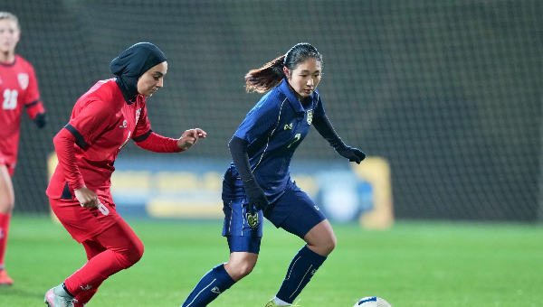 ณ เอมีร์ฮาน สเตเดียม การแข่งขันฟุตบอลหญิงรายการพิเศษ BEE GIRLS TROPHY 2026 นัดแรก ฟุตบอลหญิงทีมชาติไทย รุ่นอายุไม่เกิน 20 ปี ลงสนามพบกับ จอร์แดน ท่ามกลางอุณหภูมิ 9 องศาเซลเซียส