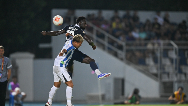 นาทีที่ 42 ชินภัทร์ ลีเอาะ เติมเกมขึ้นมาจากแนวรับ แตะบอลหนีผู้เล่นของ บีจี ปทุม ยูไนเต็ด ก่อนลองส่องไกลด้วยซ้าย แต่ทว่าบอลยังไม่ตรงกรอบ