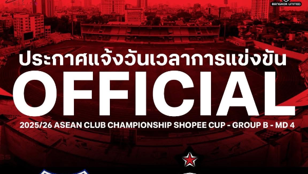 ประกาศแจ้งวันเวลาการแข่งขัน ฟุตบอลชิงแชมป์สโมสรอาเซียน 2025/26 สวายเรียง เอฟซี พบ ทรู แบงค็อก ยูไนเต็ด วันพุธที่ 22 เมษายน 2569 เวลา 18.30 น.  ฮัง เดย์ สเตเดียม