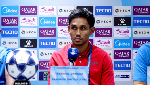 ธีรศิลป์ แดงดา ในฐานะตัวแทนของสโมสรทรู แบงค็อก ยูไนเต็ด เข้าร่วมแถลงข่าวก่อนเกมการแข่งขัน ฟุตบอล เอเอฟซี แชมเปี้ยนส์ ลีก ทู 2025/26 รอบรองชนะเลิศ​ นัดที่สอง พบ กัมบะ โอซาก้า