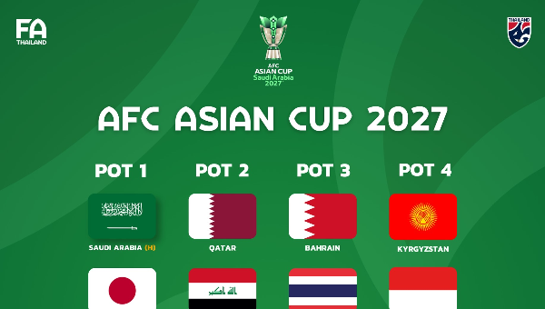 ฟุตบอลชายทีมชาติไทย อยู่โถ 3 จับสลาก AFC Asian Cup 2027 วันที่ 9 พ.ค. นี้