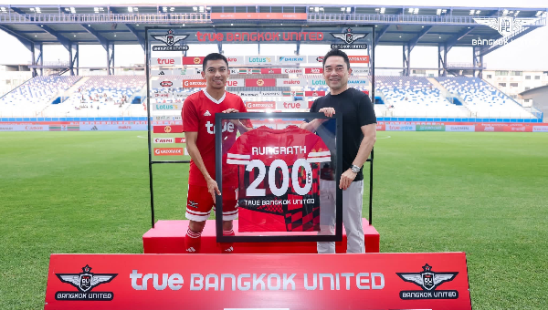 คุณขจร เจียรวนนทท์ ประธานสโมสรทรู แบงค็อก ยูไนเต็ด ได้มอบเสื้อที่ระลึกพิเศษให้กับ รุ่งรัฐ ภูมิจันทึก ที่ปัจจุบันลงสนามให้ ทรู แบงค็อก ยูไนเต็ด ครบ 200 นัดเป็นที่เรียบร้อย