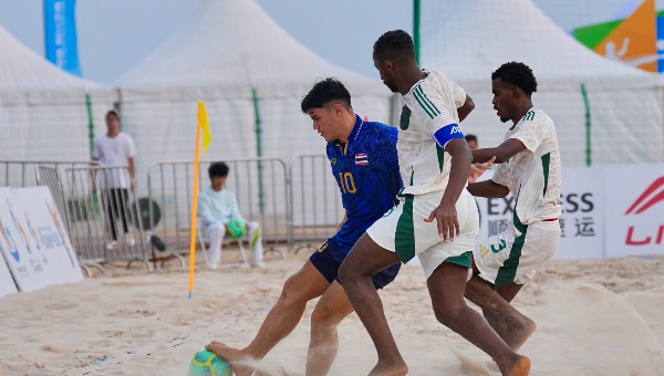 ณ ซานย่า เบย์ ยุนไห่ คลับ เวนิว คลัสเตอร์ เมืองซานย่า สาธารณรัฐประชาชนจีน การแข่งขันฟุตบอลชายหาด เอเชียนบีชเกมส์ ครั้งที่ 6 รอบแบ่งกลุ่ม กลุ่มบี นัดแรก ฟุตบอลชายหาดทีมชาติไทย อันดับ 36 ของโลก ลงสนามพบกับ ซาอุดีอาระเบีย ทีมอันดับ 21 ของโลก