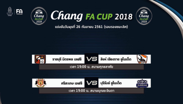 เชียงราย ยูไนเต็ด จับชนราชบุรี มิตรผล ส่วนบุรีรัมย์ ยูไนเต็ด ดวลศรีสะเกษ เอฟซี ศึกช้าง เอฟเอ คัพ 2018 รอบรองฯ