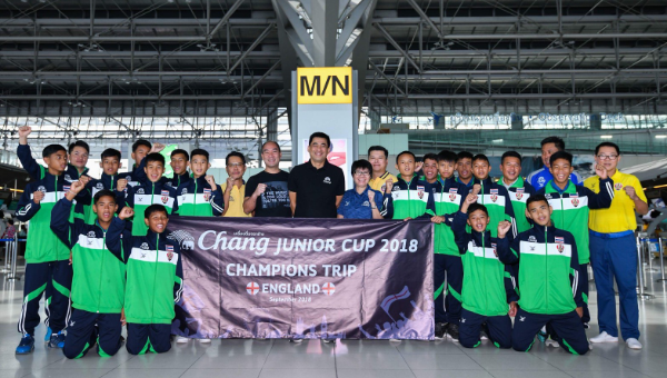 เมื่อช่วงเที่ยงวันที่ 21 ก.ย. ที่ผ่านมา ณ. สนามบินนานาชาติสุวรรณภูมิ คุณสุรพล อุทินทุ ผู้อำนวยการโครงการไทยเบฟ ไทยทาเล้นท์ บริษัท ไทยเบฟเวอเรจ จำกัด (มหาชน), นายโรจนสิทธิ์ มีนิจสิน รองผู้อำนวยการโครงการไทยเบฟ ไทยทาเล้นท์, นางสาวมันทนา ประไพเพ็ชร์ ผู้จัดการโครงการไทยเบฟ ไทยทาเล้นท์ บริษัท ไทยเบฟเวอเรจ จำกัด (มหาชน)  ได้นำทัพนักเตะทีมโรงเรียนอัสสัมชัญธนบุรี ชุดแชมป์ฟุตบอลเยาวชนรุ่นอายุไม่เกิน 13 ปี “ช้าง จูเนียร์ คัพ 2018”  เดินทางไปประเทศอังกฤษ ในโครงการ "Chang Junior Champions Trip to England 2018" ด้วยสายการบิน KLM Royal Dutch Airlines เที่ยวบินที่ 876 โดยมีผู้ปกครองของนักเตะทุกคนเดินทางมาส่งบุตรหลานด้วยความยิ้มแย้มแจ่มใส และ ภาคภูมิใจ