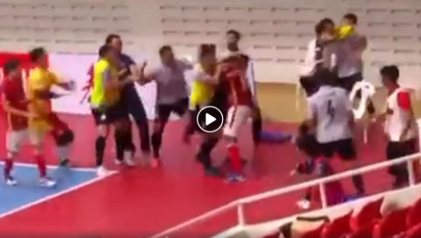 เดือดกว่าอากาศบ้านเราก็ศึกโต๊ะเล็กไทยลีกนี่ล่ะ เมื่อแฟนบอล-นักเตะ ธรรมศาสตร์ ยังบลัด กับ สุราษฎร์ธานี เปิดวอร์แลกหมัดใส่กันเละเทะในศึก ฟุตซอลไทยลีก 2019