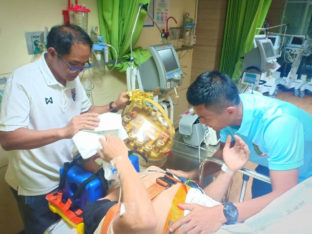 จ่าเย็นเข้าไปเยี่ยมที่โรงพยาบาลหลังจบเกม