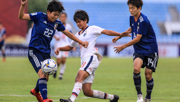 ณ สนามองค์การบริหารส่วนจังหวัดชลบุรี (ชลบุรี สเตเดียม) การแข่งขันฟุตบอลหญิงชิงแชมป์เอเชีย รุ่นอายุไม่เกิน 16 ปี ประจำปี 2019 นัดสุดท้ายของสาย เอ ทีมชาติไทย พบกับ ทีมชาติญี่ปุ่น