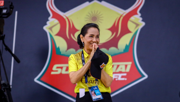 ดร.อนงค์วรรณ เทพสุทิน ประธานสโมสรสุโขทัย เอฟซี กล่าวอวยพรถึงแฟนบอลทีมสุดโขทัย เอฟซี และแฟนบอลชาวไทยเนื่อง