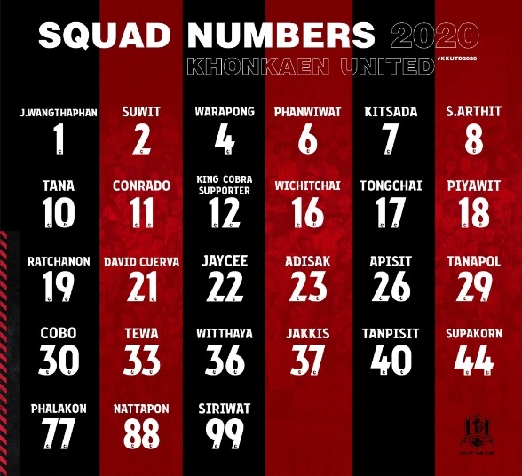 ขอนแก่น ยูไนเต็ด เปิดเบอร์เสื้อนักเตะชุดสู้ศึกไทยลีก2 ฤดูกาล 2020