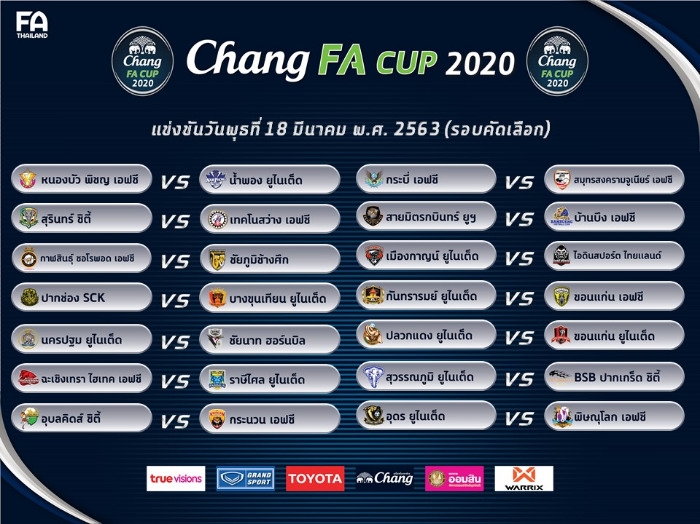 ผลการจับสลากฟุตบอลช้างเอฟเอคัพ2020รอบคัดเลือก