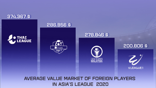 เพจอาเซียน ฟุตบอล เผยข้อมูลน่าสนใจในฟุตบอลลีกของอาเซียน โดยยกศึกฟุตบอลโตโยต้า ไทยลีก ถือเป็นลีกที่นักเตะต่างชาติที่มีมูลค่าทางการตลาดเฉลี่ยสูงที่สุดในภูมิภาคนี้ เฉลี่ยอยู่ที่ 374.367 ล้านเหรียญ หรือประมาณ 11,893.64 บาท