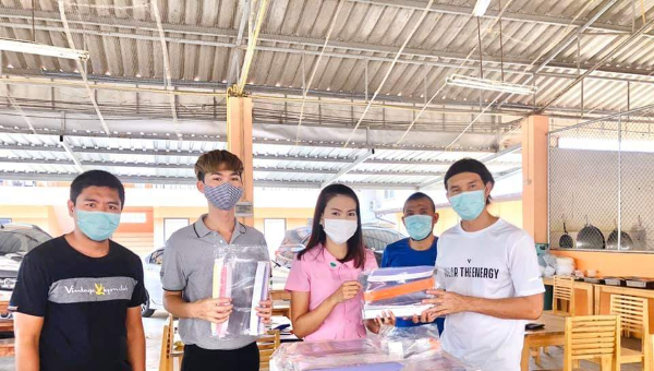 ขุนพลต่อพิฆาต นักฟุตบอลทีมพีที ประจวบเอฟซี ทำ Face Shield มอบให้โรงพยาบาลประจวบคีรีขันธ์