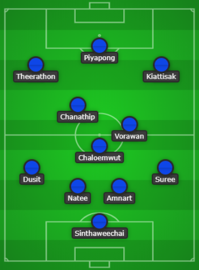 กองหน้า : เกียรติศักดิ์ เสนาเมือง, ปิยะพงษ์ ผิวอ่อน, ธีราทร บุญมาทัน