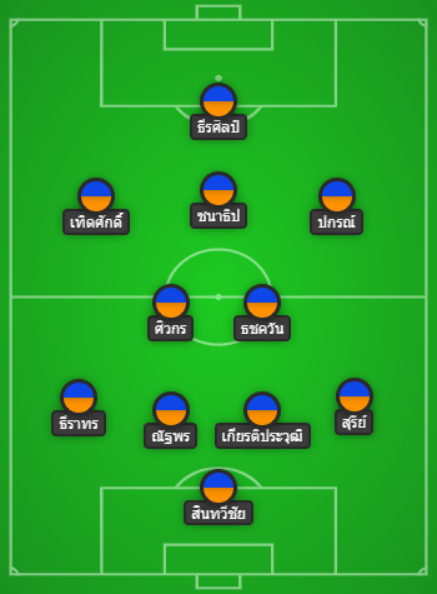 กองกลาง : ปกรณ์ เปรมภักดิ์, ชนาธิป สรงกระสินธ์, เทิดศักดิ์ ใจมั่น, ธชตวัน ศรีปาน, ศิวกร จักขุประสาท