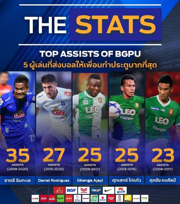 บีจี ปทุม ยูไนเต็ด เผยสถิตินักเตะที่แอสซิสต์ให้กับทีมมากที่สุดตลอดกาลตั้งแต่ก่อตั้งสโมสรมา