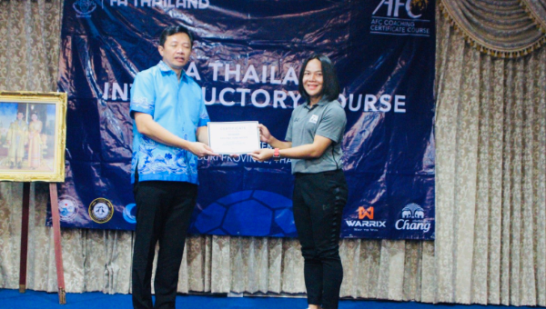 กาญจนา สังข์เงิน กองหน้าฟุตบอลหญิงทีมชาติไทย กล่าวถึงการอบรมโค้ชหลักสูตร FA Thailand Introductory Course ที่จะช่วยพัฒนาตัวเอง ต่อยอดการเป็นโค้ชอาชีพ