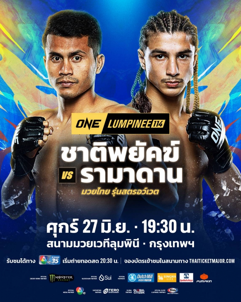 ชาติพยัคฆ์ ศักดิ์สตูล นักชกอาวุธหนัก วัย 26 ปี จากสตูล ขอดวลเดือดกับ รามาดาน ออนดาช ดาวรุ่งวัย 18 ปี จากเลบานอน ในกติกามวยไทย รุ่นสตรอว์เวต (115-125 ป.) ในศึกนัดใหญ่ ONE ลุมพินี 114 วันศุกร์ที่ 27 มิ.ย.นี้
