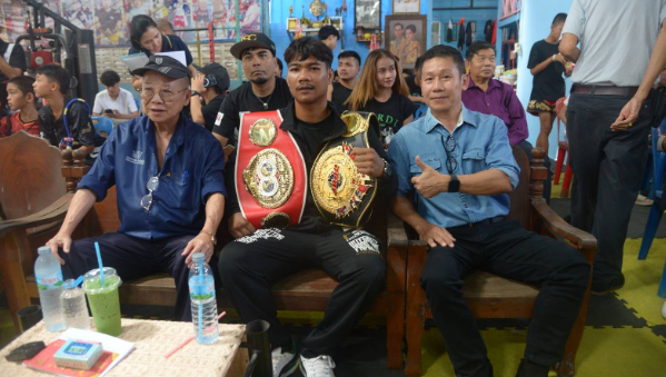 สมาน ส.จาตุรงค์ ร่วมแสดงความยินดีกับ เพชรโกศล กรีนซีดะ ที่นำเข็มขัดแชมป์โลก IBF 108 ปอนด์ ที่เคยเป็นของเขา กลับสู่เมืองไทยได้สำเร็จ หลังจากไป 30 ปีเต็ม