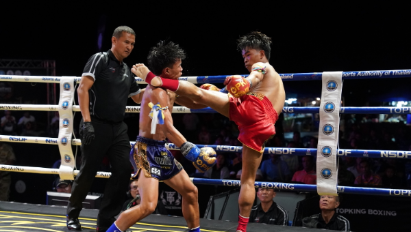 แสงพนม ผดุงชัยมวยไทยยิมส์ (พิษณุโลก) ชนะคะแนน เพชรดาด้า เกียรติวิทยา (แม่ฮ่องสอน)