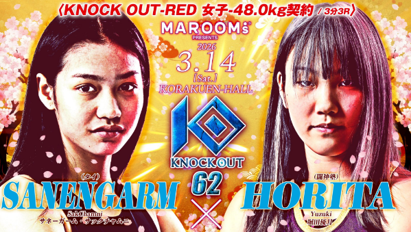 ศึกคิกบ็อกซิงระดับโลกรายการ KNOCK OUT 62 ทวีความเดือดขึ้นไปอีกขั้น หลังฝ่ายจัดการแข่งขันประกาศเพิ่มคู่มวยหญิงพิกัด 48 กิโลกรัมอย่างเป็นทางการ โดยจะเป็นการพบกันระหว่าง เสน่ห์งาม ศิษย์กำนันเชษฐ์ หรือ นิรชา ตังจิว ยอดนักชกสาวชาวไทย พบกับ โฮริตะ ยูซึกิ ดาวรุ่งพุ่งแรงจากค่ายดังเจ้าถิ่น การชกครั้งนี้จะสู้กันภายใต้กติกา KNOCK OUT-RED กำหนด 3 ยก ยกละ 3 นาที ณ สังเวียนอันศักดิ์สิทธิ์โครักกุเองฮอลล์ กรุงโตเกียว ประเทศญี่ปุ่น ในวันเสาร์ที่ 14 มีนาคมนี้
