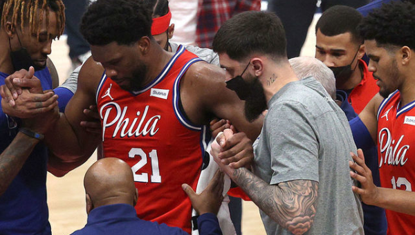 โฌแอล เอ็มบีด เซนเตอร์ ฟิลาเดลเฟีย 76เซอร์ส ได้รับผลตรวจคลื่นแม่เหล็กไฟฟ้า (เอ็มอาร์ไอ) ออกมาแล้วเมื่อเช้าเสาร์ (ท้องถิ่น) ว่าเข่าซ้ายไม่มีความเสียหายที่เอ็นไขว้เข่าด้านหน้าหรือหมอนรองเข่า จากจังหวะลงพื้นผิดท่าเกมชนะ วอชิงตัน วิเซิร์ดส์ 127-101 คะแนนเมื่อวันศุกร์
