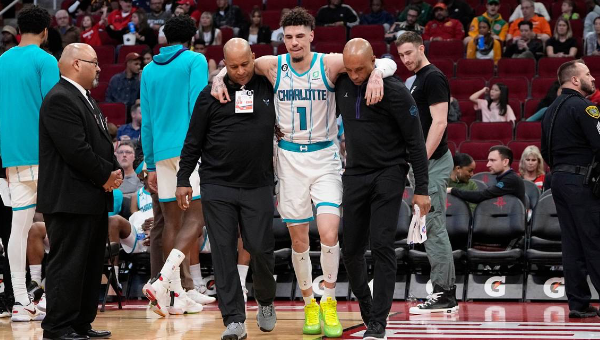 ลาเมโล่ บอล การ์ดจ่าย ชาร์ล็อตต์ ฮอร์เน็ตส์ ข้อเท้าซ้ายแพลงระหว่างควอเตอร์ 3 เกมเมื่อพุธที่ผ่านมาซึ่งเอาชนะ ฮิวสตัน ร็อคเก็ตส์ 122-117 คะแนนต้องติดตามอาการว่าหนักหนาแค่ไหน