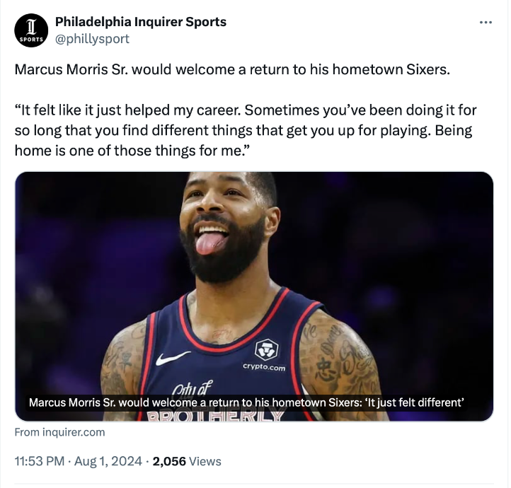 แฟรนไชส์ ฟิลาเดลเฟีย 76เซอร์ส สนใจใช้เรตค่าจ้างขั้นต่ำของผู้เล่นประสบการณ์แก่สองฟร้อนต์คอร์ตต่างสไตล์อย่าง มาร์คัส มอร์ริส ซีเนียร์.หรือ เดวิส เบอร์แทนส์