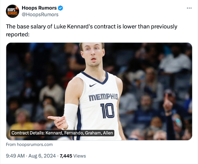 รายงานจาก ‘ฮู้ป รูเมอร์ส’ ว่าสัปดาห์ก่อนมีข้อตกลงระหว่างผู้เล่นวัย 28 ปีที่ปลงใจกลับไปเล่นยัง เฟ็ดเอ็กซ์ ฟอรั่ม สัญญา 1 ปีนั้น เอาจริงๆมันการันตีคิดในซาลารี่ แคปเพียง 9.25 ล้านเหรียญ สหรัฐฯ