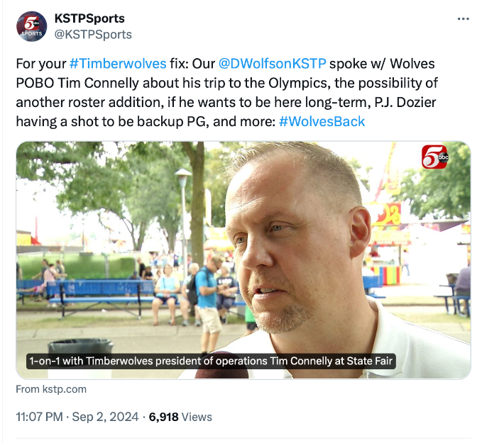 ทิม คอนเนลลี่ ปธ.บาสฯฝ่ายปฎิบัติการของ มินเนโซตา ทิมเบอร์วูล์ฟส์ มั่นใจว่าเทรนนิ่ง แคมป์ 2024 จะมีเซนเตอร์ รูดี้ โกแบร์ ร่วมติวกับทีมเมตอย่างเต็มรูปแบบ แม้เผชิญปัญหาบาดเจ็บระหว่างแข่งปารีส อลป.ให้ทีมชาติฝรั่งเศส