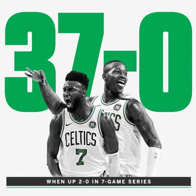 หาก เซลติคส์ นำ 2-0 เกม ในการแข่งระบบ 4 จาก 7 นัด ตลอด 37 ซีรี่ส์ก่อนนี้เฮทั้งหมด