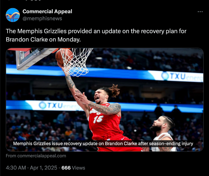 แบรนด้อน คล้าร์ก ฟร้อนต์คอร์ต เมมฟิส กริซซ์ลี่ส์ เลือกจัดการปัญหาเจ็บเข่าขวาด้วยการฉีดยาแก้ปวดให้อาการค่อยๆทุเลาลง แทนผ่าตัด คาดกลับมาเล่นได้เป็นปกติทันต้นซีซั่นใหม่