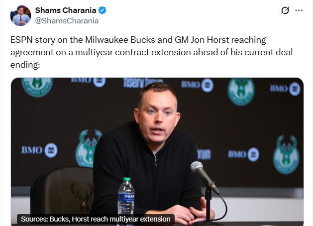 แฟรนไชส์ มิลวอคกี บัคส์ บรรลุข้อตกลงเพื่อต่อสัญญาใหม่มากกว่า 1 ปีแก่ผู้จัดการทั่วไป จอน ฮอร์สท์ ตามรายงานของ อีเอสพีเอ็น