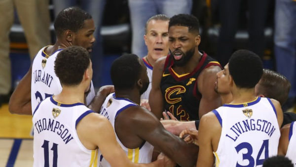 เดรย์มอนด์ กรีน ฝั่ง โกลเด้น สเตท วอร์ริเออร์ส มีเรื่องกับ ทริสแทน ธอมป์สัน เซนเตอร์ คลีฟแลนด์ คาวาเลียร์ส ตั้งแต่รอบชิงเอ็นบีเอเกมแรก