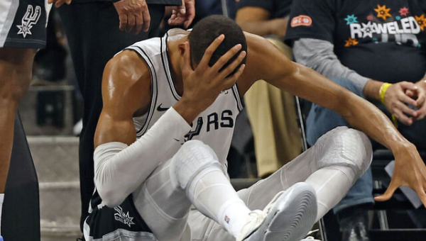 วิคเตอร์ เวมบานยาม่า ดาวเด่นของ แซน แอนโทนิโอ สเปอร์ส เล่นไม่จบเกม 2 เพลย์ออฟ รอบแรก ฝั่งตะวันตก ที่แพ้ปอร์ตแลนด์ เทรล เบลเซอร์ส เมื่อวันอังคาร หลังจากหน้ากระแทกพื้นสนามในควอเตอร์ที่สอง บทสรุปแพ้ 103-106 คะแนน เสมอที่ 1-1 เกมซีรี่ส์