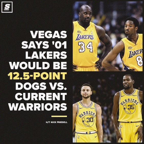 เดอะ เวสต์เกต ลาส เวกัส ซูเปอร์บุ้ก บ่อนรับพนันใหญ่ในสหรัฐฯ หยิบเรื่องที่ท้ากันตามหน้าสื่อฯ ว่า โกลเด้น สเตท วอร์ริเออร์ส ยุคปัจจุบัน กับ แอลเอ เลเกอร์ส ชุดแชมป์ 3 ปีติด ใครเจ๋งกว่ามาเปิดราคา โดยให้สะพานทองข่มถึง 12.5 แต้ม