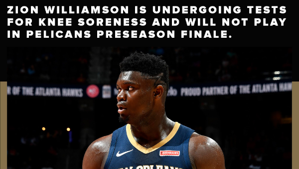 แฟรนไชส์ นิว ออร์ลีนส์ เพลิแกนส์ จะไม่ส่ง ไซออน วิลเลียมสัน ฟอร์เวิร์ดรุคกี้เทพลงแข่งปรี-ซีซั่นส่งท้ายในวันศุกร์นี้ (ตามเวลาท้องถิ่น) เนื่องจากนักกีฬามีปัญหาเจ็บเข่าขวาเล็กน้อย