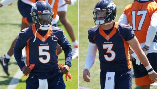 เท็ดดี้ บริดจ์วอเตอร์ (หมายเลข 5) กับ ดรูว์ ล็อค (หมายเลข 3) จะแข่งขันเต็มรูปแบบในช่วงเทรนนิ่งแคมป์เพื่อแย่งตำแหน่งควอร์เตอร์แบ็กตัวจริงของ เดนเวอร์ บร็องโก้ส์ ซีซั่น 2021
