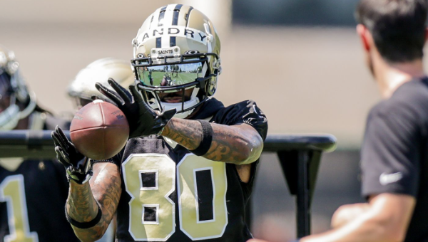 จาร์วิส แลนดรี้ ปีกนอกประสบการณ์ของ นิว ออร์ลีนส์ เซนต์ส ระหว่างการฝึกซ้อมกับทีมนักบุญช่วงปิดฤดูกาลนี้