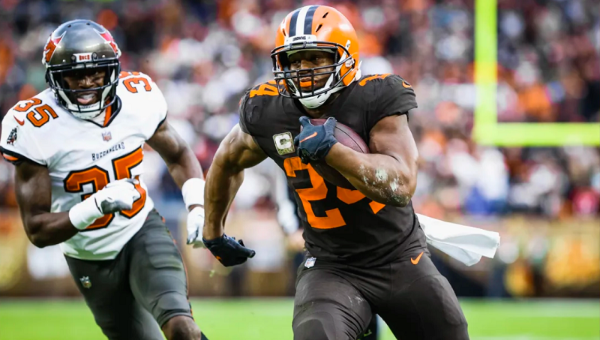 นิค ชับบ์ รันนิ่งแบ็ก คลีฟแลนด์ บราวน์ส วิ่งทำสกอร์นำทีมแซงชนะ แทมป้า เบย์ บัคคาเนียร์ส ในช่วงต่อเวลาพิเศษ 23-17 เมื่อวันอาทิตย์ที่ผ่านมา