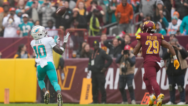 ทายรีก ฮิลล์ รับบอลรวมกัน 157 หลาทำ 2 ทัชดาวน์นำ ไมอามี่ ดอลฟินส์ บุกชนะ วอชิงตัน คอมแมนเดอร์ส เมื่อวันอาทิตย์ที่ผ่านมา